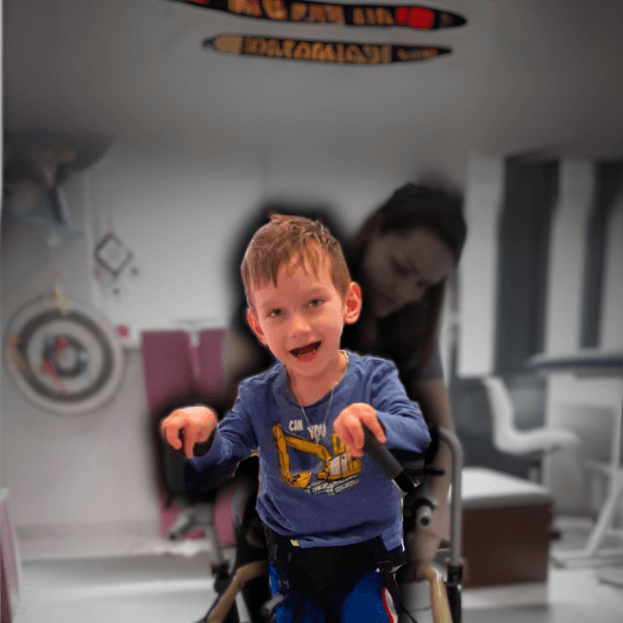 Mikuś ma zaburzenia koordynacji ruchowej i wzmożone napięcie mięśniowe w prawej nodze. Nie jest w stanie postawić całej stopy na ziemi. W skutek tego Jego prawa noga może być krótsza, ponieważ mięśnie mogą nie nadążyć rosnąć…