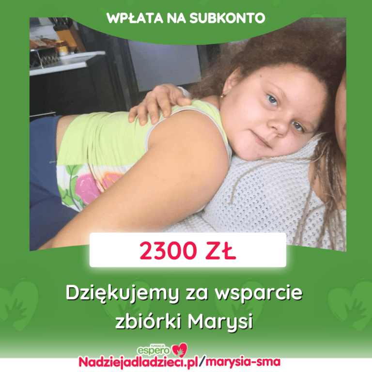 Dziękujemy Radzie Rodziców przy Szkole nr 82 w Warszawie za ich dobroć oraz pozostałym darczyńcom za ich znaczący wkład w dalsze leczenie dziewczynki. Wasza życzliwość i zaangażowanie mają ogromne znaczenie i pomagają nam w realizacji celów, które są tak ważne dla Marysi. Jeszcze raz dziękujemy za okazaną pomoc i wsparcie.