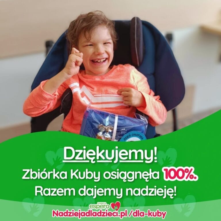 Z całego serca dziękujemy wszystkim, którzy przyczynili się do zebrania pełnej kwoty na gorset dla Kuby! Dzięki Waszej ogromnej hojności i wsparciu udało się osiągnąć 100% celu w niecałe 24 godziny. Ta pomoc ma ogromne znaczenie i daje Kubie szansę na lepsze życie. Jesteście niesamowici, a Wasza solidarność i zaangażowanie są niezastąpione. Dziękujemy, że jesteście z nami!