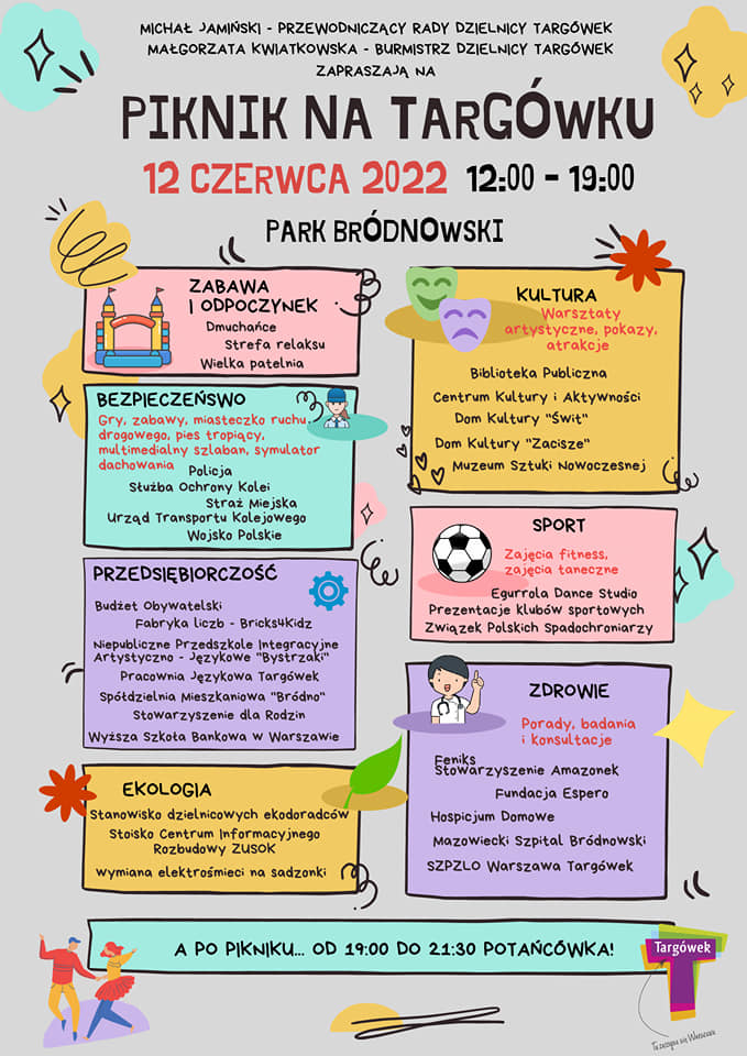 Dzięki uprzejmości Urzędu Dzielnicy Targówek, będziemy uczestniczyć w Piknik na Targówku