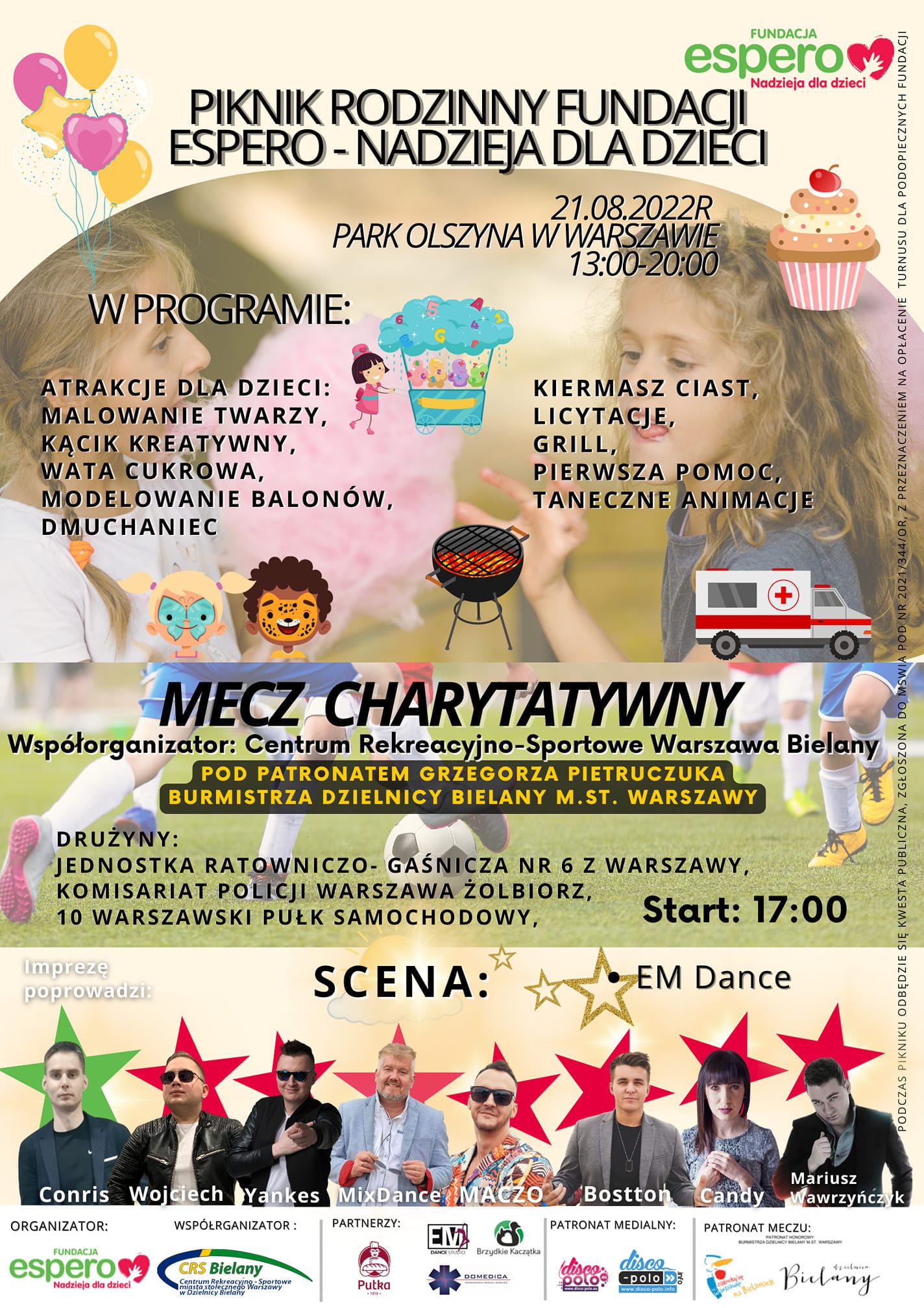 Już w najbliższą niedzielę – 21.08 wraz z CRS Bielany zapraszamy Was do Parku Olszyna, na warszawskich Bielanach na Piknik rodzinny fundacji Espero ![]()
